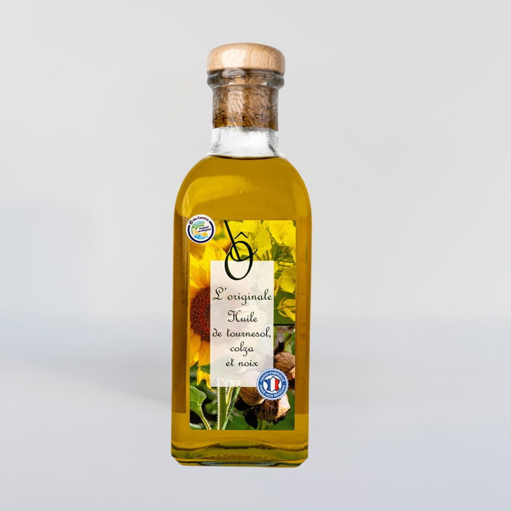 – Assemblage harmonieux de trois huiles végétales pour un goût équilibré.